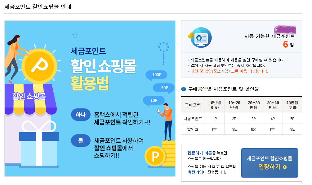 ▶ 세금포인트 할인 쇼핑몰에서 사용 가능