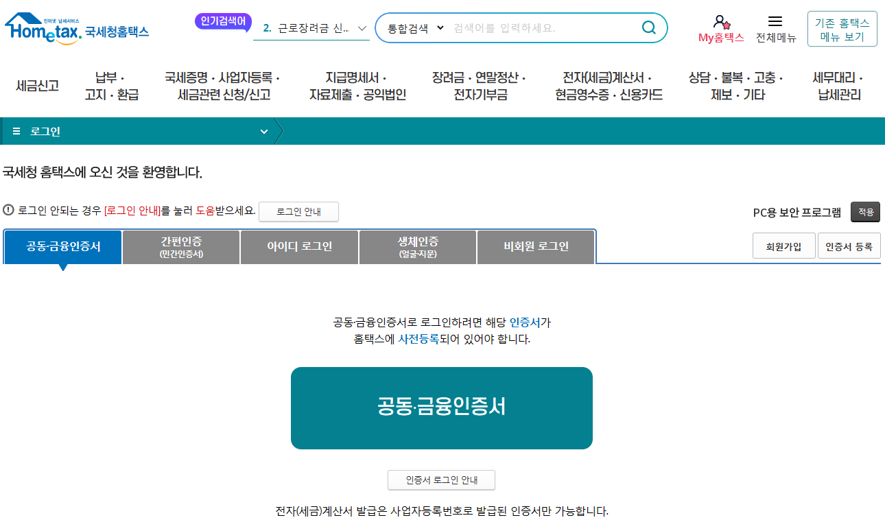 ▶ 홈택스 홈페이지 hometax.go.kr 에서