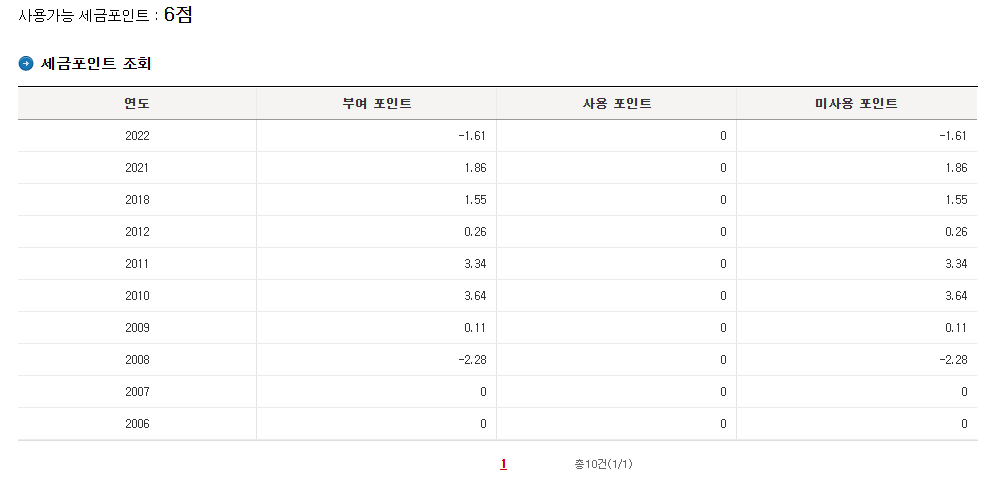 ▶ 개인 납세자는 소득세 10만원 당 1점 (고지납부는 0.3이며, 환급 시 차감됩니다.)